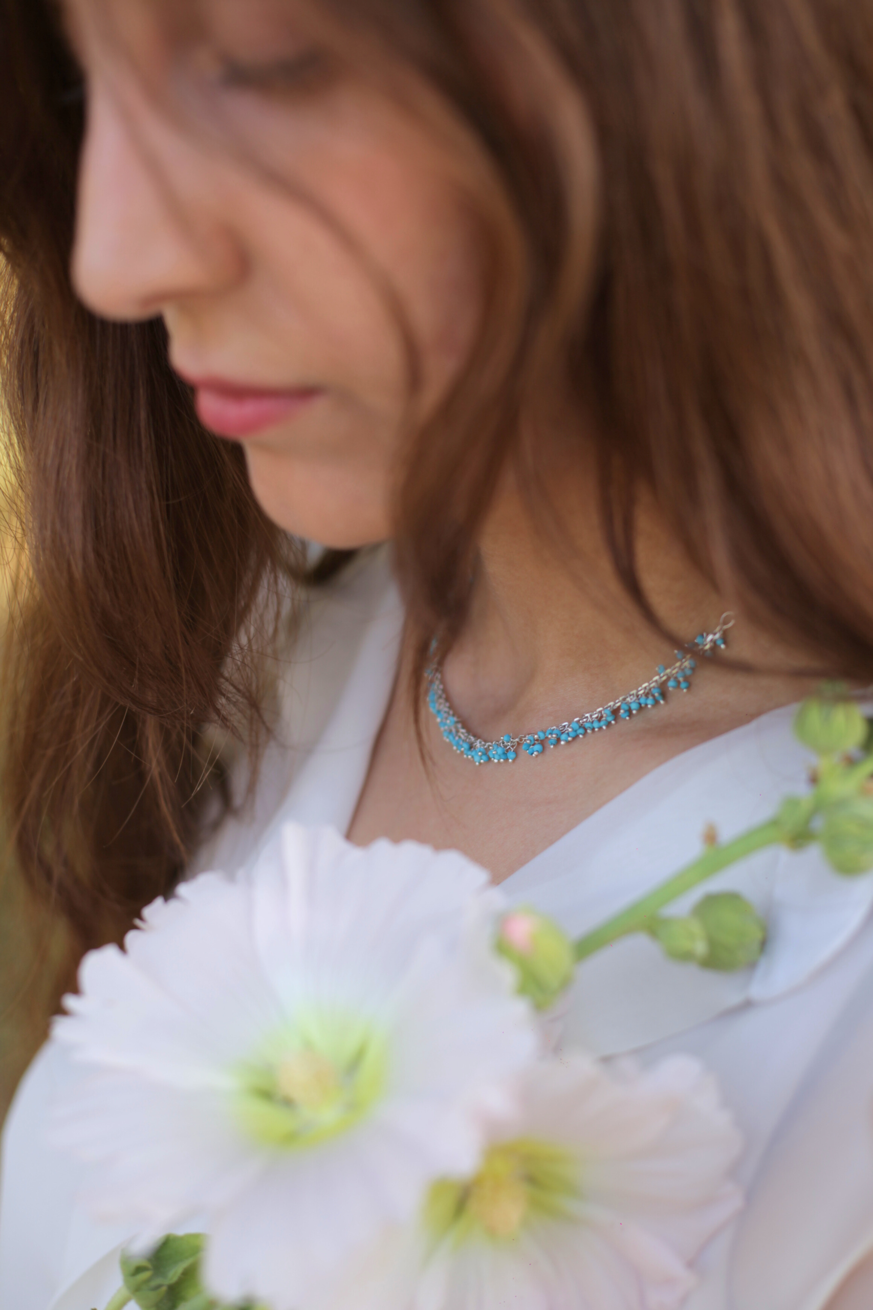 Woven with silver, these stones are a vision of blooming branches—gently wrapped around the neck as if nature itself has slowly blossomed upon your skin.